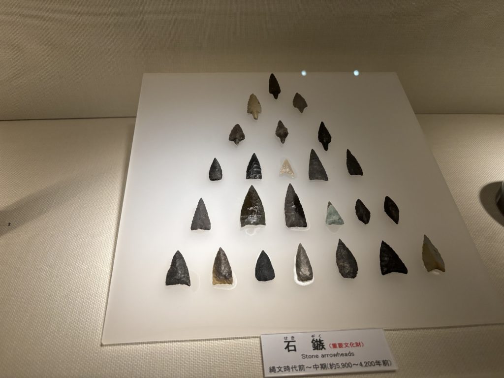 また、ヒスイは新潟の糸魚川から、アスファルトは新潟や秋田から、黒曜石の矢尻は北海道から、琥珀を岩手の久慈から入手しており、同程度の規模の集落があり5000年以上前から交易が盛んだったと考えられている。