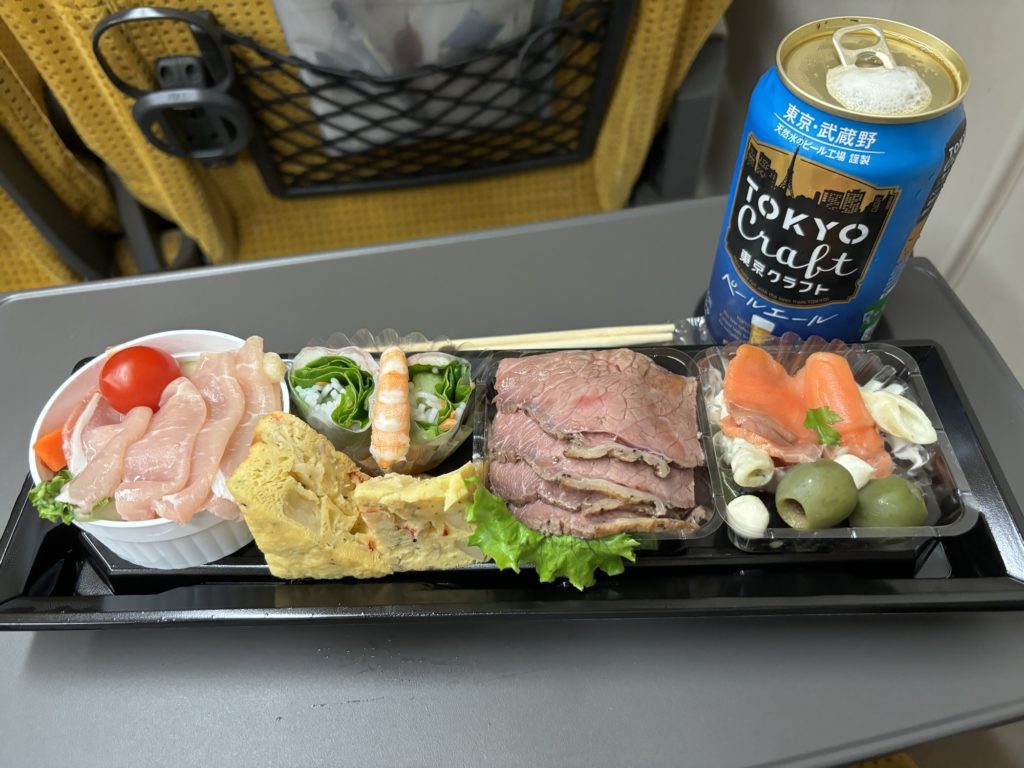 帰りの新幹線はこんな感じで、リラックスタイムでした。往復終始隣が空席で気兼ねなく過ごせました。