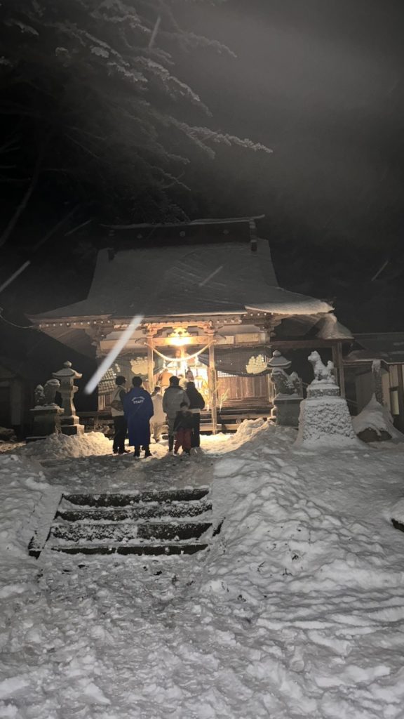 今年は少し出遅れたが、恒例の初詣(元朝参り)へ。雪景色の中、灯りが最小限なのもあり厳かな雰囲気だ。元旦の0時から朝7時とかまでしか開かない神社なので、実家で年を越さないとお参りできない。急な石段プラス丸木の足場を110段以上昇ったところに社殿があるのと(高齢者には過酷だ)参拝するのはほぼ近隣部落の人々。参拝客は年々減少傾向だ。社殿の中で迎えてくれる当番のおじいちゃんたちも昔はもっと数がいてにぎやかだったけど、今年は3人しかいなかった。お神酒をいただいて、おみくじを引いて帰ってきた。